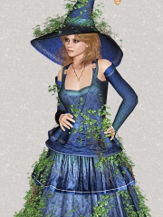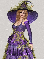 These are images of the Victoria 4 figure in an outfit called Wildwood, created by Sveva and Propschick availbale for purchase at Renderosity. The first three outfits are originals and the 4th - the purple one is one where I took the blue outfit and colourized it.